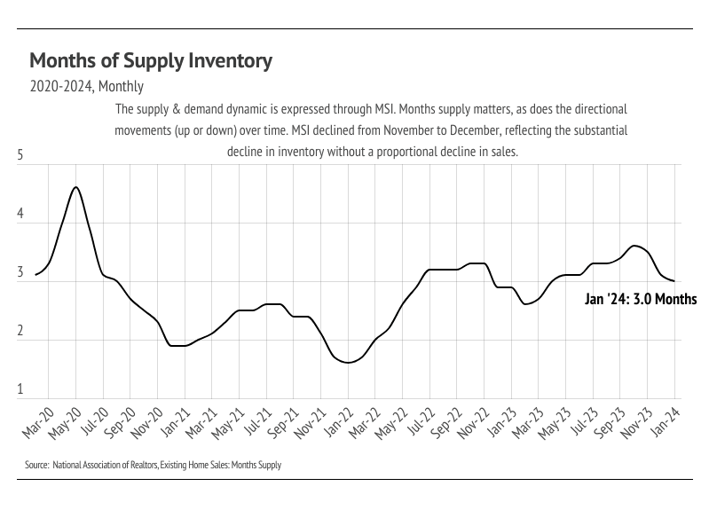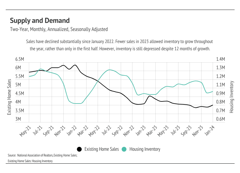 The prolonged period of higher rates has also shifted buyer and seller expectations. Buyers who were previously priced out of the market now have had ample time to save for a down payment. Additionally, buyers and sellers have become more accustomed to higher rates and are less emotionally tied to the exceptionally low rates witnessed in 2020 and 2021. These factors, coupled with high buyer demand relative to supply, indicate the potential for a more active housing market this year.